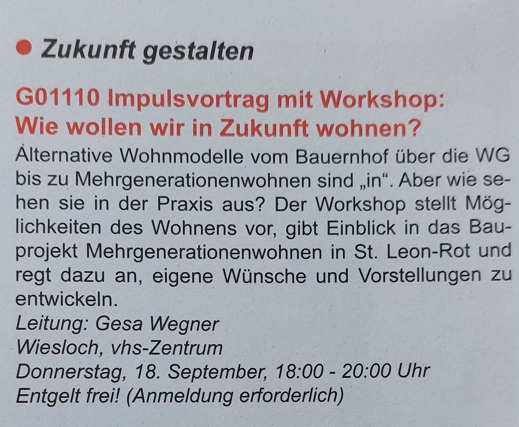 1.Informationsveranstaltung zum Mehrgenerationenwohnen am 19.10.2019